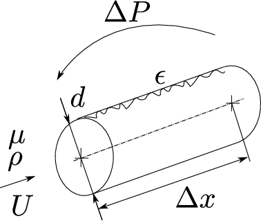 avendo scelto come grandezza fisica caratteristica del problema il gradiente di pressione \(\dfrac{\Delta P}{\Delta x}\) e non il salto di pressione e la lunghezza del tubo prese indipendentemente. Il teorema di Buckingham garantisce che il problema può essere caratterizzato da 3 numeri adimensionali (6 grandezze fisiche - 3 grandezze fondamentali (M,L,T)). Se si scelgono \(\rho\), \(U\), \(d\) come grandezze di riferimento, si possono costruire i tre numeri adimensionali come