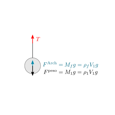 Osservazione. La forza di Archimede è una forza interna scambiata tra i corpi solidi e l’acqua nella quale sono immersi; per il terzo principio della dinamica di Newton - azione e reazione, la loro risultante è nulla: il solido \(1\) riceve una spinta dal fluido verso l’alto, mentre il fluido riceve dal solido \(1\) una spinta verso il basso di intensità \(\rho_{H_2 O} V_1 g\), con \(V_1\) il volume del corpo \(1\).